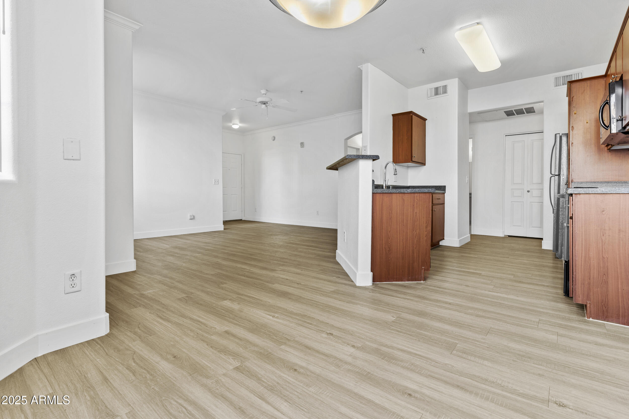 Check out this rare 3-bedroom floorplan in the in-demand Solana Condo community--it's the only 3-bdrm option available right now! Main living space is super bright and roomy with 9-ft ceilings, stylish crown molding, and a clean, neutral color scheme that lets the natural light shine in. The primary suite comes with its own full ensuite and a roomy walk-in closet, while the 2nd bedroom features dual closets and direct access to the second bathroom. The 3rd bedroom, split for extra privacy, is perfect as a home office.